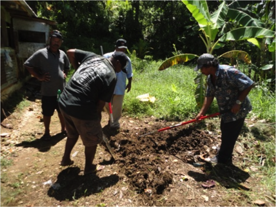 Fefen Island Mayor Serino Tokyo (extreme right) led in preparing plots.