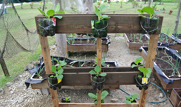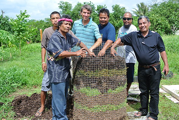With this in mind, a multi-site extension program has begun to establish urban vegetable demonstration gardens in Pohnpei and Majuro for education and training. As part of this, a three-day training workshop on urban vegetable gardening was recently completed at Yap CRE. Extension staff from the College of Marshall Islands Land Grant Program, Pohnpei CES, Yap CRE and Yap SDA School attended this training workshop. The objectives of this training program were to: i) illustrate soil profile and their significance in urban gardening, ii) describe the important steps in urban vegetable gardening, and iii) provide hands-on training on urban garden designs and construction of various growers suitable for urban gardening. Following a specially designed extension program based on lecture cum hands-on activities and supported by various extension publications, participants were engaged in topics such as soil characteristics, quick composting methods, growing media preparation, urban garden designs, construction of various types of plant growers, nutrient management, etc. As part of the training, participants built some unique vertical growers and filled with locally prepared media and transplanted some seedlings. Observations, discussions and pre- and post-tests were conducted to evaluate this training activity.