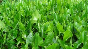 Salt tolerant giant swamp taros in field for evaluation